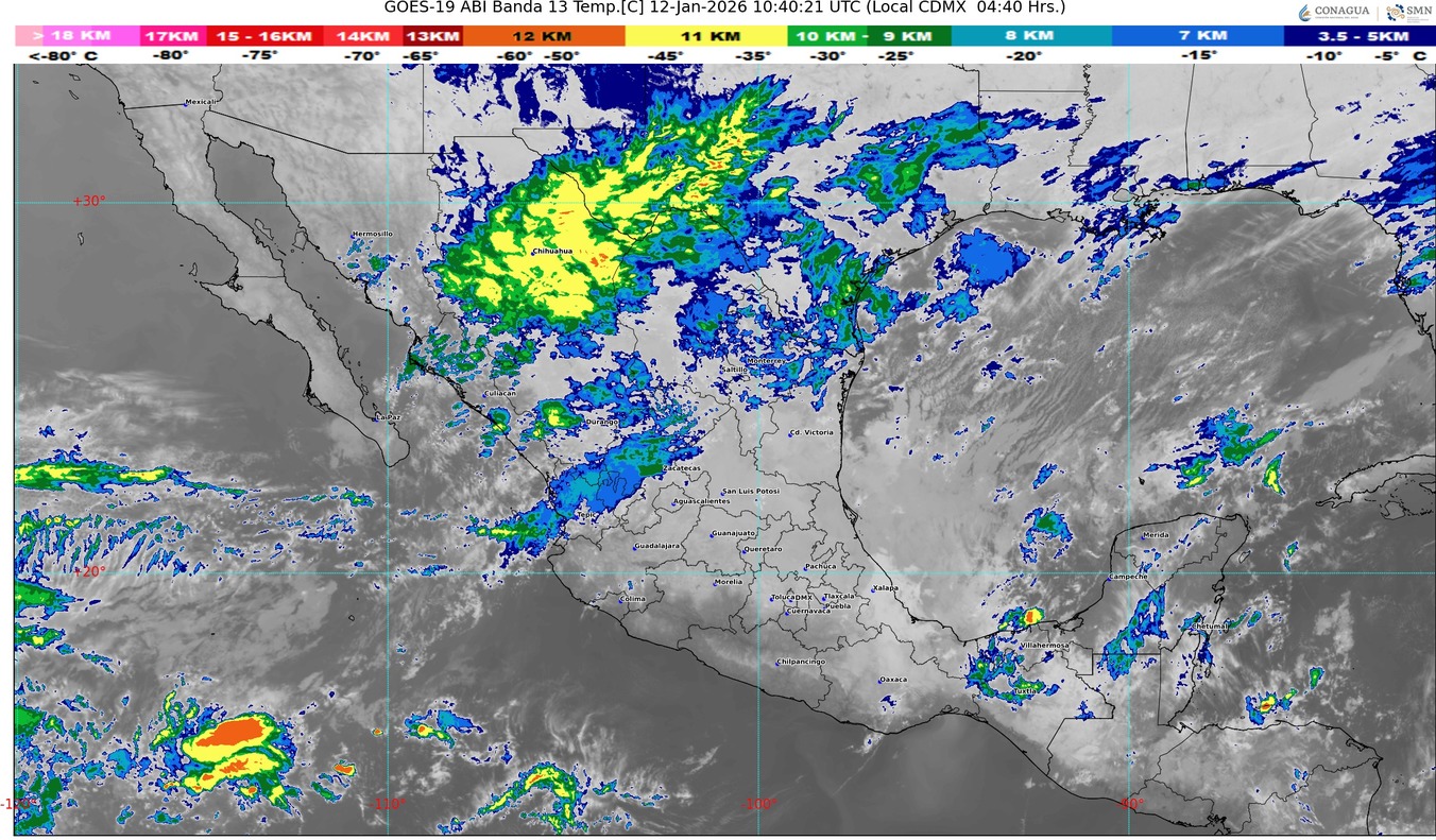 Por otra parte, un nuevo frente frío se aproximará al noroeste de México, originando rachas de viento en dicha región.